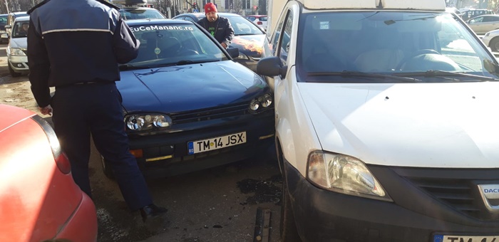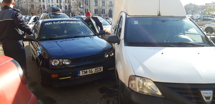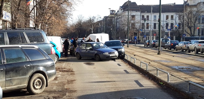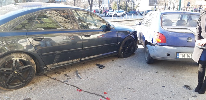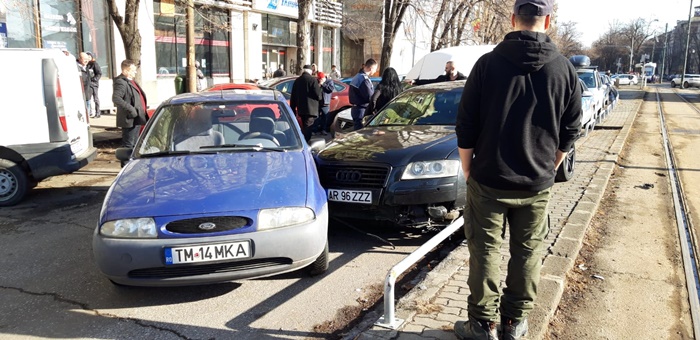 TIMISOARA. Accident in centrul Timisoarei, joi la pranz. 4 masini au fost avariate, dupa ce o soferita a facut o manevra stranie.