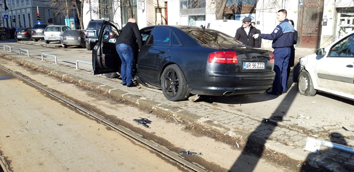 In drumul sau, Audi-ul soferitei a rupt barele metalice de protectie din dreptul liniilor de tramvai de pe ambele sensuri.
