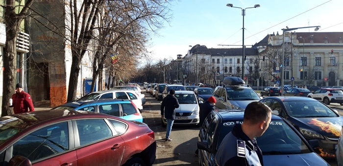 Dubita a fost proiectata in alte doua autoturisme, unul care era parcat si altul care venea pe strada Proclamatia de la Timisoara catre Sfantul Gheorghe.