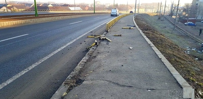 Este povestea unui sofer din Arad, care la primele ore ale zilei circula cu masina pe pasajul Micalaca. La un moment dat omul a pierdut controlul BMW-ului, a rupt parapetul pasarelei si a cazut de pe pod. Masina s-a rostogolit de mai multe ori si s-a oprit apropierea unei linii de tramvai.