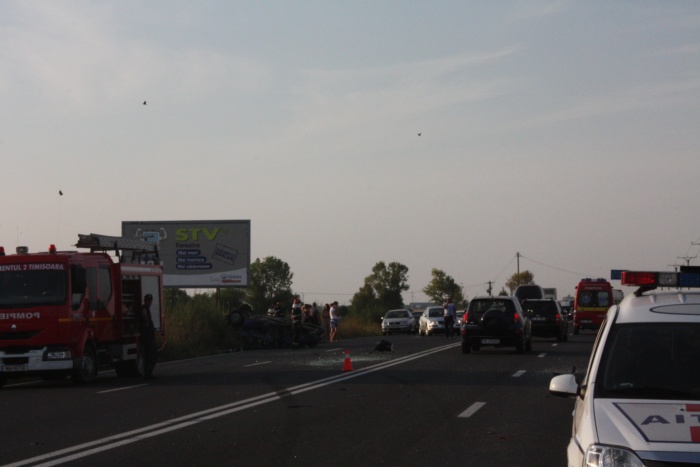 Au vazut moartea cu ochii! Asta se poate spune despre sase persoane care au fost implicate in aceasta seara intr-un accident petrecut langa localitatea Parta pe drumul ce leaga Timisoara de Sag.