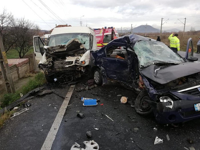 Grav accident de circulatie vineri dimineata pe o sosea din Hunedoara. O femeie a murit, iar alti doi oameni au fost raniti, dupa un impact devastator intre o autoutilitara ce transporta sicrie si un autoturism.