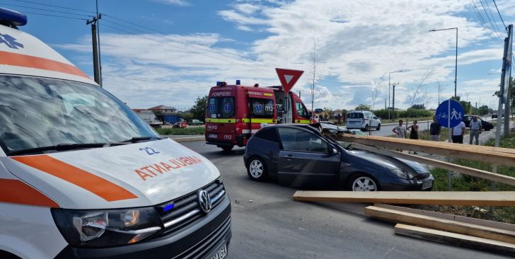 TIMISOARA. Accident grav, luni dimineata, langa Timisoara. Un copil de 3 ani a fost ranit, dupa ce mai multe scanduri au cazut dintr-o camioneta si au strapuns parbrizul masinii in care se afla.