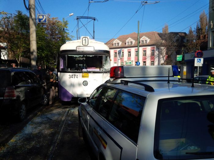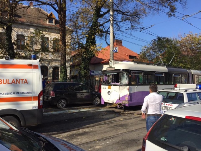 UPDATE 1: 17 oameni au fost raniti usor, dupa ce s-au prabusit de pe scaune ori au cazut din picioare in momentul accidentului. Doi copilasi, de 1 an si 4 ani, se regasesc printre victime, dar si vatmanul tramvaiului.