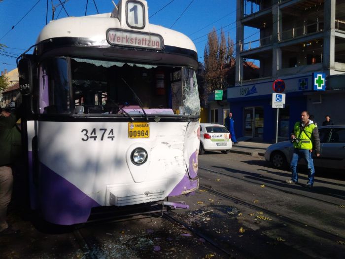 TIMISOARA. Momente teribile in fata Spitalului de Copii Louis Turcanu din Timisoara. Mai multi oameni au fost raniti, dupa ce o betoniera a izbit violent un tramvai aflat in mers. Acestia erau calatori in garnitura lovita de betoniera. In urma impactului, oamenii care erau in tramvai au cazut claie peste gramada si s-au lovit.