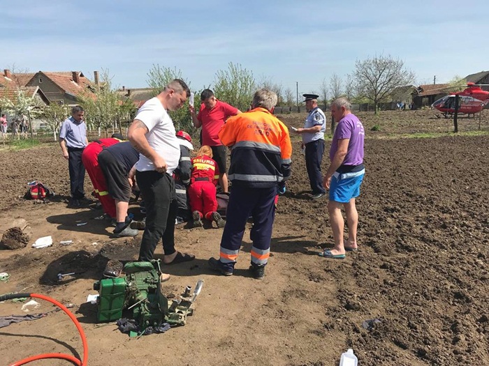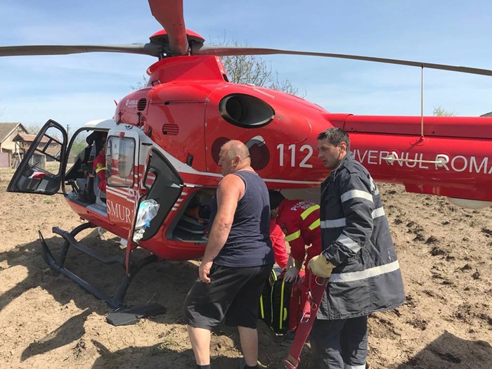 Barbatul a suferit rani foarte grave, astfel ca a fost nevoie de interventia elucopterului SMURD care a aterizat in gradina vecinilor. Omul a fost transportat de urgenta la Spitalul Judetean Timisoara, unde medicii fac eforturi sa-i salveze viata.