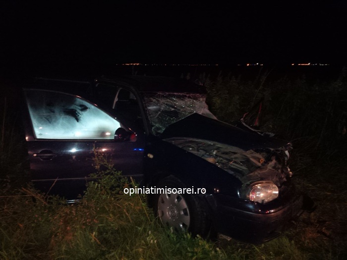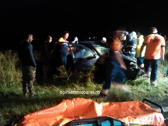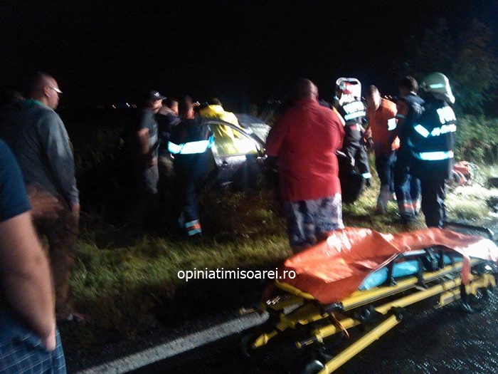 Femeia a fost scoasa de pompieri din masina si transportata de urgenta la spital in Timisoara, in stare grava. Echipele de interventie s-au chinuit sa salveze si cainele din autoturismul zdrobit, insa nu au reusit.