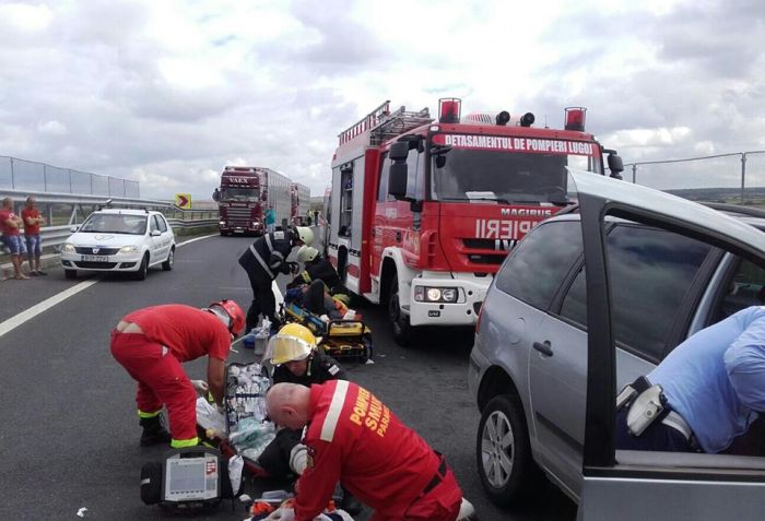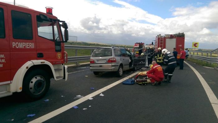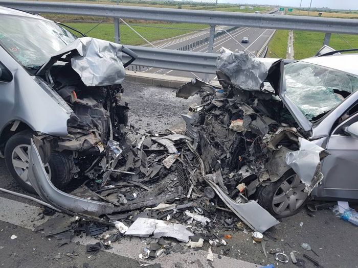TIMISOARA. Groaznic accident la Lugoj, la trecerea de pe o autostrada pe alta, de pe A6 (tronson din Deva-Lugoj) pe A1 (Lugoj-Timisoara), duminica dupa-amiaza. Pe centura de legatura dintre cele doua segmente de sosea de mare viteza, in apropiere de Balint, soferul unui autoturism a patruns pe contrasens unde a izbit violent o alta masina ce venea din fata.