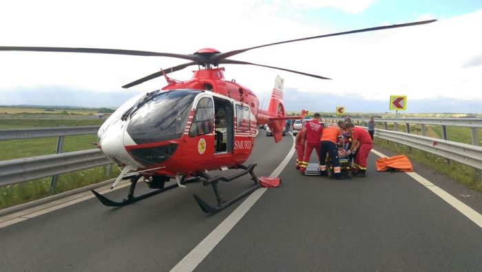 Traficul in zona a fost blocat pentru ca elicopterul sa poata ateriza in siguranta sa preia unul dintre ranitii in stare grava.