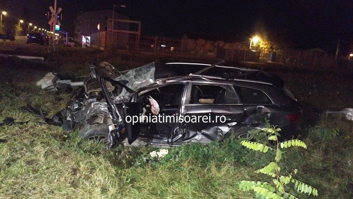 TIMISOARA. S-a dat alarma inainte in puterea noptii la numarul de urgenta 112, dupa ce un accident violent s-a produs la o trecere de cale ferata de langa Timisoara. O masina a lovit cu putere un tren aflat in mers. 3 oameni au fost grav raniti si e o minune ca au scapat cu viata.