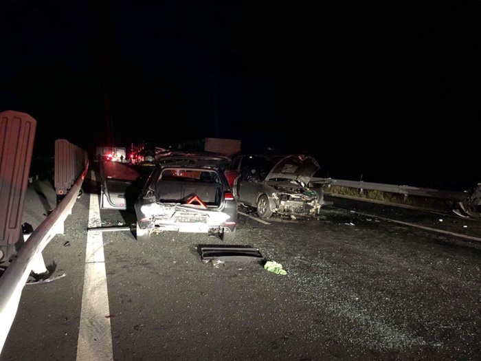 Politistii urmeaza sa stabileasca cu exactitate cauzele producerii accidentului. Unul dintre autotrenuri s-a defectat si s-a oprit pe banda de urgenta, al doilea l-a lovit in plin, iar celelalte 4 autovehicule au intrat mai apoi unul in altul.