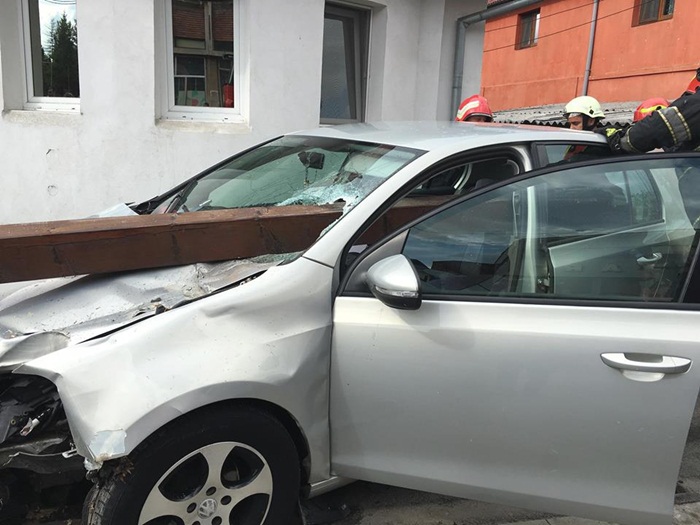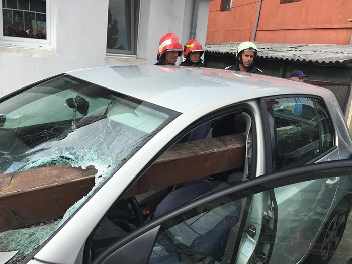 O balustrada de lemn a intrat prin parbrizul masinii, prin partea stanga, in zona volanului, iar soferita abia a apucat sa se fereasca. Bucata de lemn a rupt o tetiera si s-a oprit in scaunul din spate al autoturismului, pe care se afla si un catel. Animalul nu a fost ranit in urma impactului, scrie gddhd.ro.