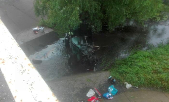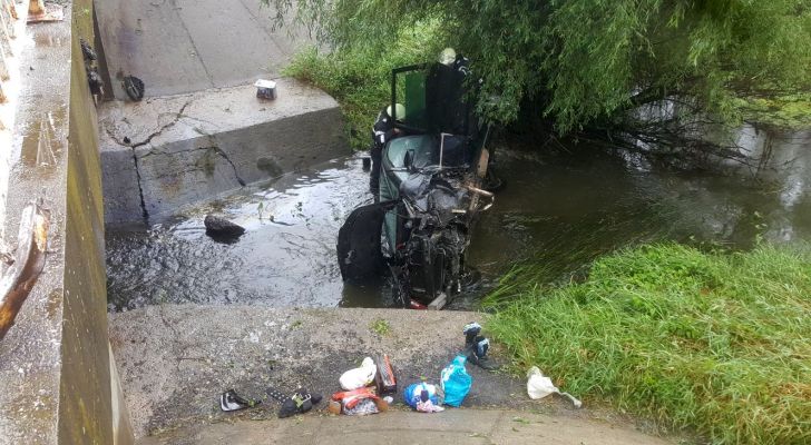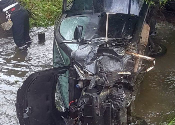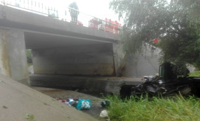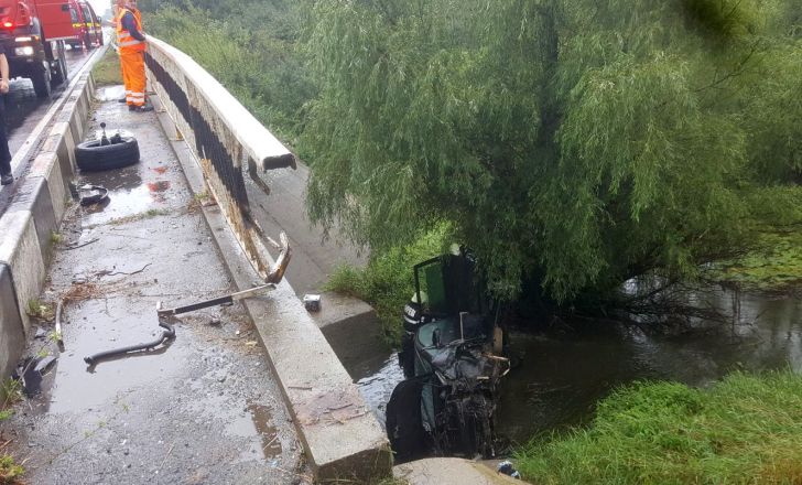 TIMISOARA. Grav accident de circulatie pe soseaua Timisoara – Moravita. Un sofer, se pare, a adormit la volan, a izbit un cap de pod, iar autoturismul s-a prabusit in albia unui parau.