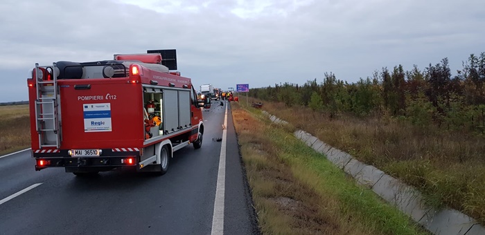 TIMISOARA. Grav accident de circulatie, miercuri dimineata, la intrarea pe Autostrada Vestului, langa Timisoara.