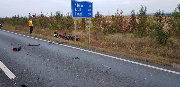 O masina a fost lovita de un autotren, aproape de Remetea Mare, iar in urma impactului, autoturismul a fost proiectat in afara soselei, in santul de pe marginea drumului, unde s-a rasturnat.