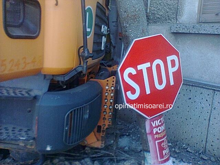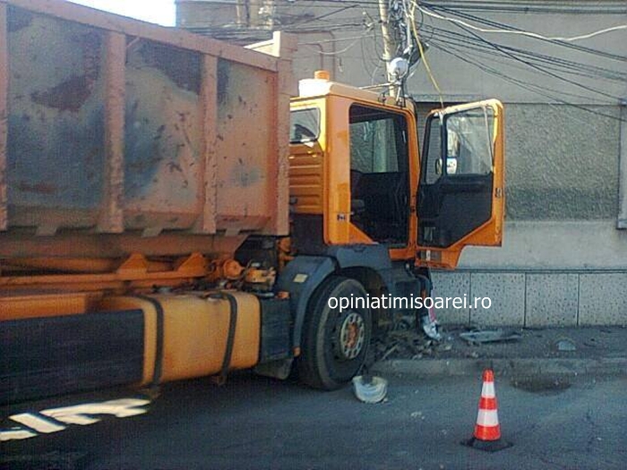 LUGOJ. Alerta in centrul Lugojului in aceasta dimineata, in urma unui accident! Unui sofer angajat al firmei de salubritate din oras i s-a facut brusc rau la volan si a pierdut controlul camionului pe care il conducea.