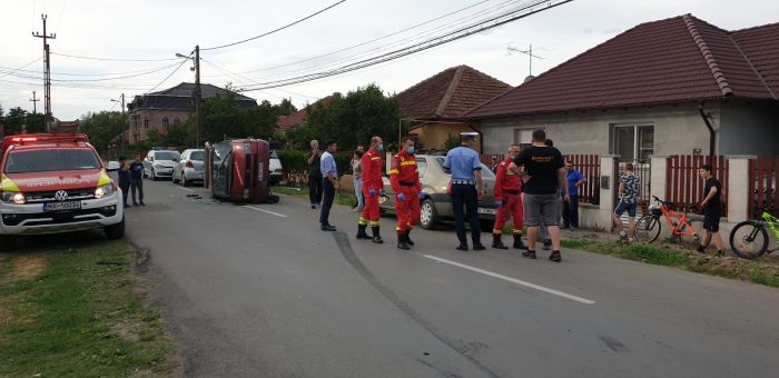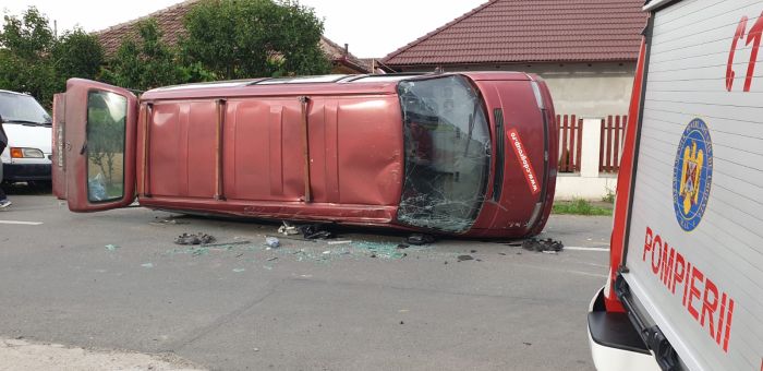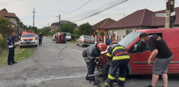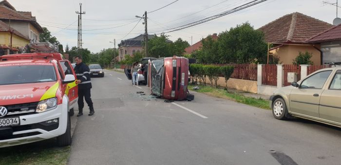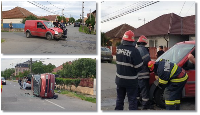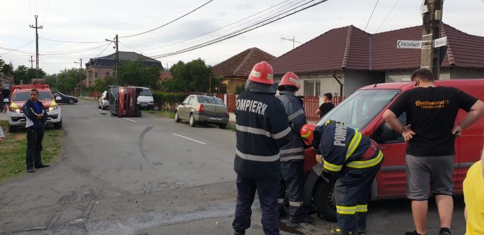 TIMISOARA. Accident de circulatie vineri seara intr-o intersectie din Timisoara. Un microbuz si o dubita s-au izbit puternic, iar in urma impactului, primul a fost rasturnat si impins la aproximativ 30 de metri.