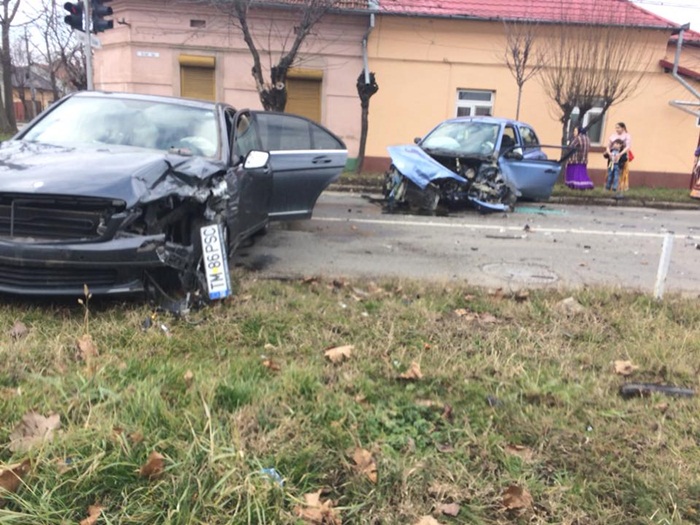 TIMISOARA. Impact puternic intr-o intersectie din Timisoara, miercuri dupa-amiaza. Doua autoturisme s-au izbit in timpul unui viraj. O tanara mama si copilul ei au fost raniti.