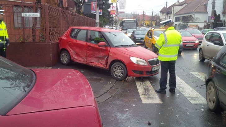 Skoda mergea pe Rebreanu catre Spitalul Judetean, iar la intersectia cu Brancoveanu, soferul, un tanar, a virat stanga. Nu a observat Volkswagen-ul Vento care mergea catre Calea Sagului pe banda intai si l-a lovit in plin.