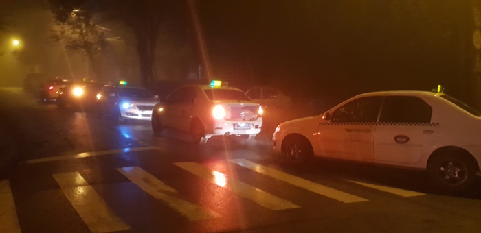 TIMISOARA. Accident intr-o intersectie din cartierul Freidorf din Timisoara, noaptea trecuta. In conditii de ceate densa, un taximetru a izbit un Audi pe strada Andreescu.