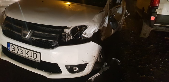 Impactul a fost puternic, astfel ca Audi-ul a fost proiectat pe un spatiu verde din vecinatatea strazii, iar masina de taxi a ramas in mijlocul drumului.