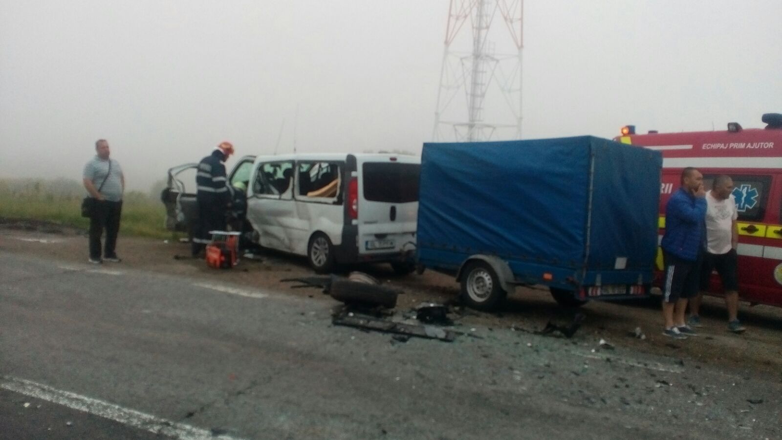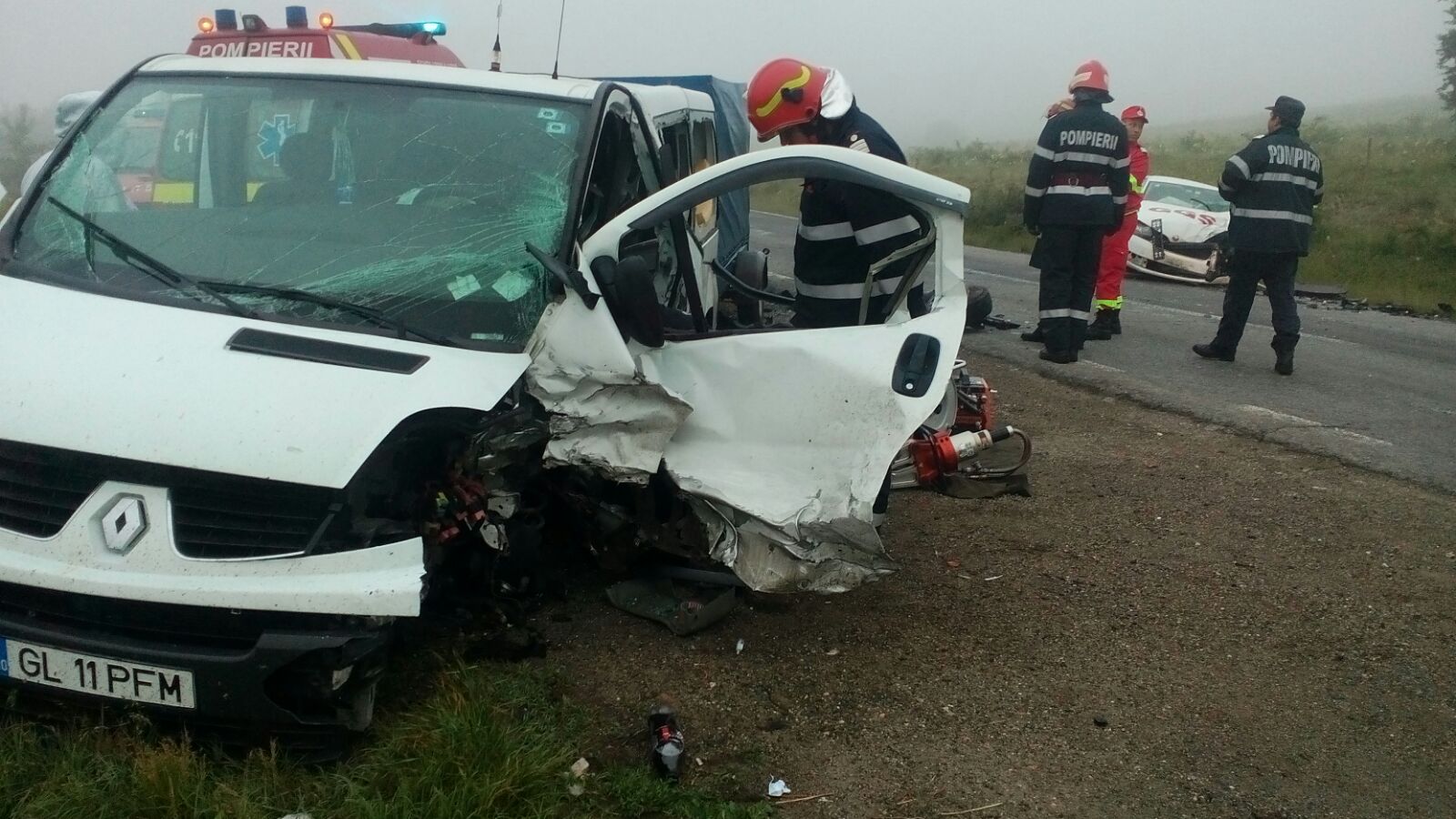 Ciocnire teribila intre un autoturism si un microbuz ce transporta mai multe persoane pe o sosea din vestul tarii.
