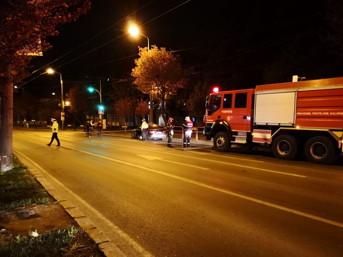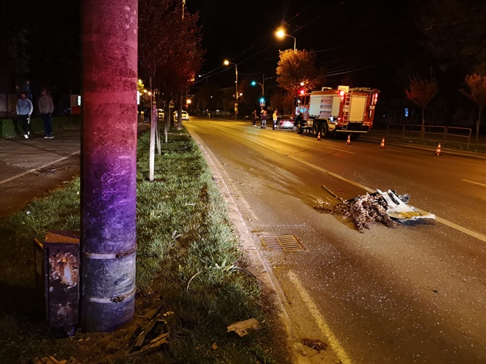 TIMISOARA. Grav accident de circulatie noaptea trecuta la Timisoara. Un BMW, al carui sofer gonea prin oras s-a izbit puternic de un stalp pe strada Cluj, in vecinatatea liceului de Arte Ion Vidu.