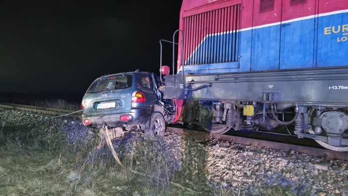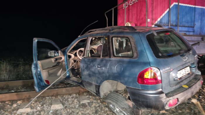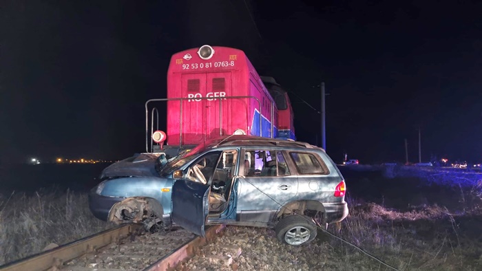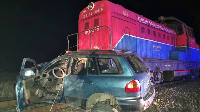 TIMISOARA. Grav accident la o trecere la nivel cu calea ferata in Timis, luni seara. O locomotiva a izbit o masina la Remetea Mare, la iesirea spre Ianova.
