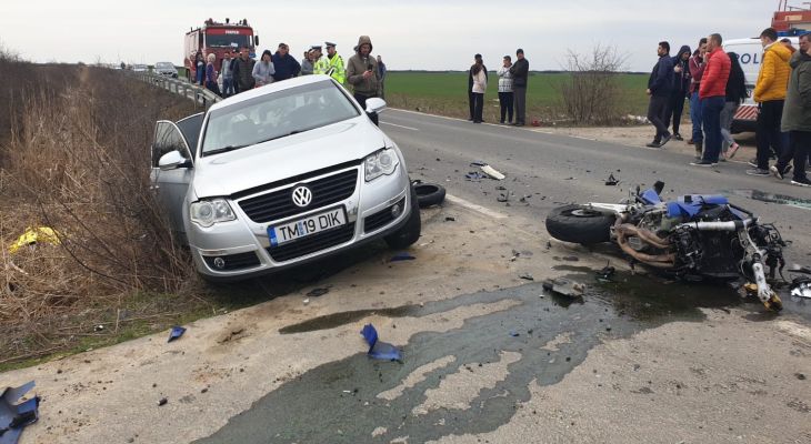 “Un barbat de 40 de ani conducea un autoturism pe drumul dinspre Sacalaz inspre Sanmihaiu Roman, a incercat sa vireze stanga pe un drum secundar, fara a se asigura, si nu a observat ca era depasit de un motociclist in varsta de 28 de ani, intrand in coliziune cu acesta. In urma accidentului a rezultat decesul motociclistului. De asemenea, a mai fost o persoana ranita usor, aflata pe bancheta din spate a masinii“, transmit pentru opiniatimisoarei.ro reprezentantii IPJ Timis.