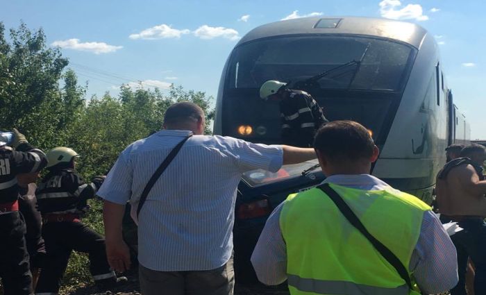 TIMIS. Impact violent, marti dupa amiaza, intre un tren si o masina, in judetul Timis.
