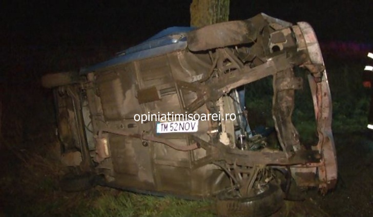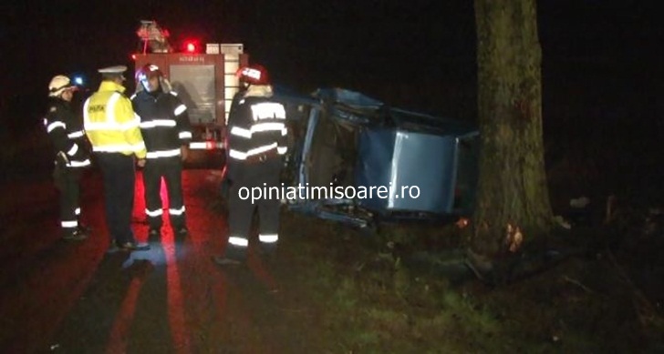 TIMISOARA. Accident pe soseaua ce leaga Timisoara de Varias, vineri seara! O masina s-a strivit de un copac de pe marginea drumului, iar cei doi barbati aflati in autoturism au fost raniti. Unul dintre ei a ramas captiv in caroseria zdrobita si a fost nevoie de interventia unui echipaj de la Descarcerare pentru scoaterea lui.