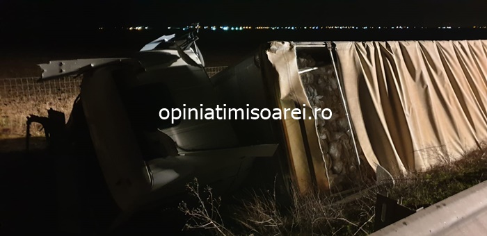 TIMISOARA. Grav accident rutier pe Autostrada Timisoara – Lugoj luni seara, in dreptul localitatii Remetea Mare. Un TIR si un microbuz s-au ciocnit violent.