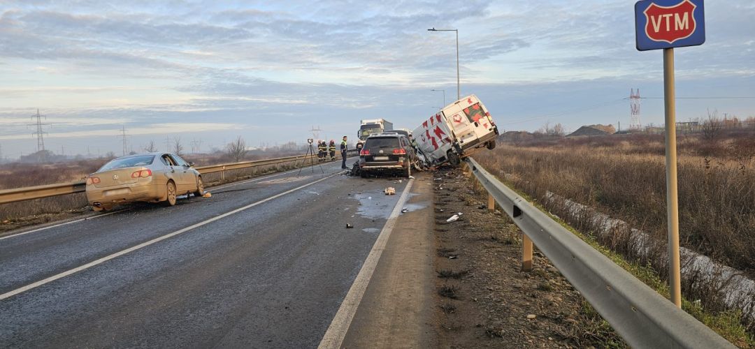 TIMIȘOARA. Grav accident de circulație, sâmbătă dimineață, pe Centură Sud Timișoara, aproape de intersecția cu Drumul Boilor.