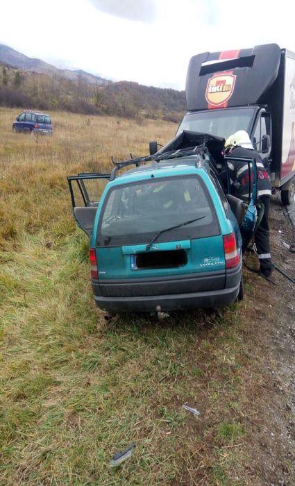 Accidentul s-a petrecut intr-o curba periculoasa, din pricina unei depasiri riscante. Un autoturism s-a izbit violent de o autoutilitara. Impactul a fost devastator.