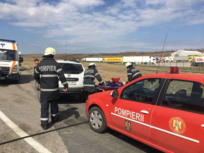 Mai multe ambulante si pompieri au intervenit rapid la locul accidentului.