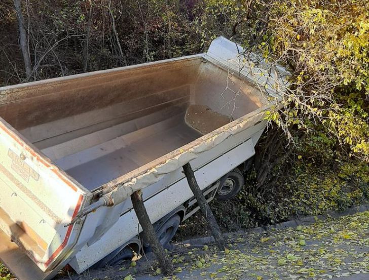 Un om a fost ranit si circulatia data peste cap pe o sosea din vestul tarii, dupa ce o basculanta a iesit de pe sosea si s-a oprit intr-un pom.