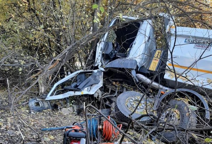 Accidentul a avut loc in apropierea localitatii aradene Paulis. Soferul, un barbat in varsta de 51 de ani, a pierdut controlul volanului intr-o curba la stanga, masina de mare tonaj a parasit drumul, a urcat pe un mal de pamant si s-a oprit intr-un copac.