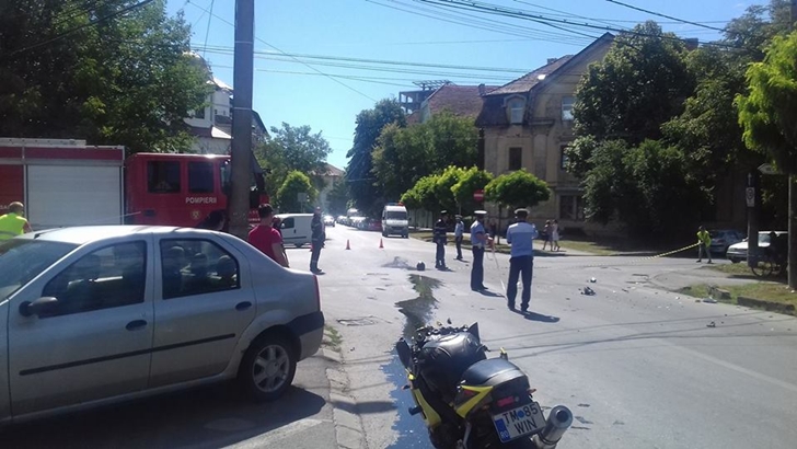 Accidentul a avut loc la intersectia strazilor Eric Baader si Infratirii. Un motociclist care circula dinspre bulevardul Take Ionescu catre liniile de cale ferata a a fost lovit de un autoturism. Impactul a fost atat de puternic incat motocicleta a ajuns la cateva zeci de metri de locul ciocnirii.