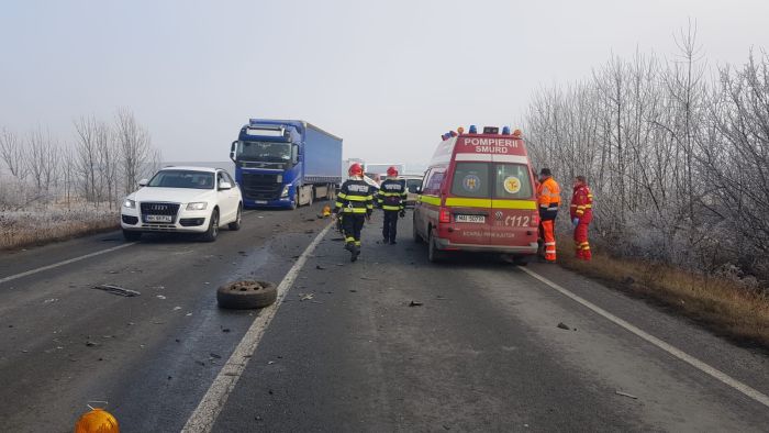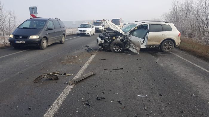 TIMISOARA. Grav accident de circulatie vineri la amiaza pe soseaua ce leaga Timisoara de Lugoj, soldat cu 3 raniti, intre care si un copil.