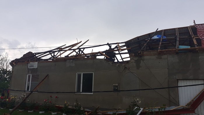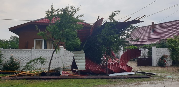 Acoperisurile de pe 4 case au fost pur si simplu smulse de vantul puternic in localitatea Racovita. Bucati de tabla, tigla si lemn s-au prabusit pe masini, iar una a fost avariata.