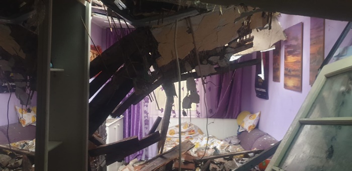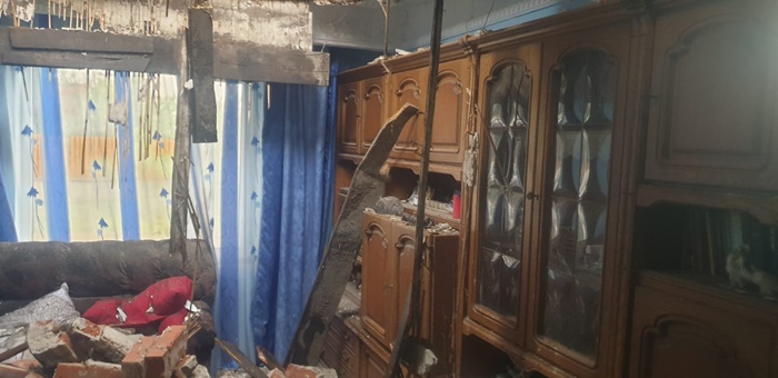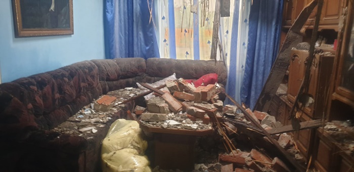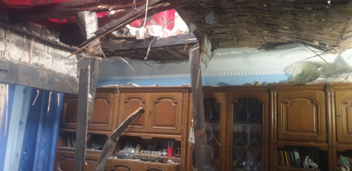 In locuintele ramase fara acoperis e prapad. Bucati de tavan, caramizi si moloz s-au prabusit peste mobila, provocand distrugeri insemnate.