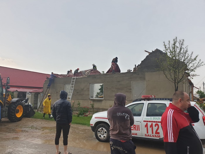 Imediat ce aversele de ploaie s-au mai domolit, localnicii au sarit si ei in ajutorul vecinilor napastuiti si s-au apucat sa acopere zidurile cu folii de plastic si alte materiale, si pentru a mai salva ce se mai poate.