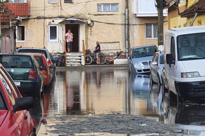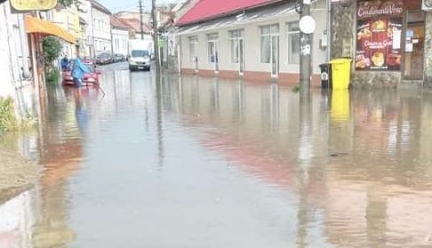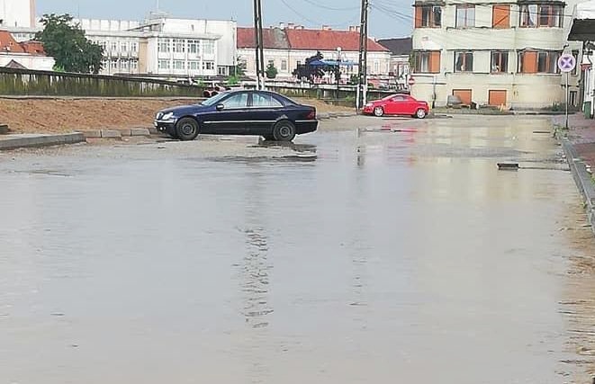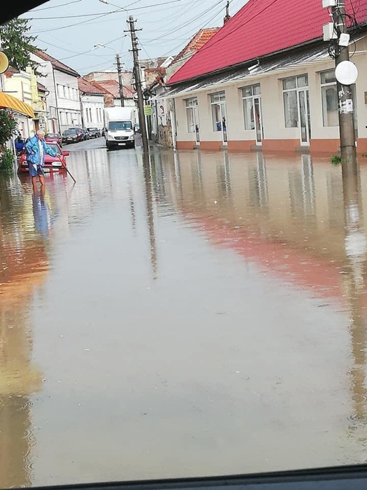 Mai multe strazi din oras au fost si ele acoperite de ape. In zona pietei agroalimentare apa a trecut peste nivelul rotilor masinilor.