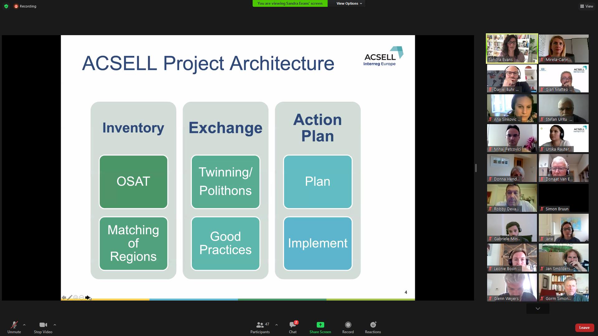 Partenerii își propun îmbunătățirea politicilor locale pentru stimularea inovării și a competitivității și accelerarea capacității inovative în rândul IMM-urilor, prin facilitarea schimbului de bune practici și a transferului de cunoștințe și informarea asupra beneficiilor utilizării unei abordări de tip Living-Lab (în procesul de creare și dezvoltare de produse și servicii bazate pe cerere). Descrierea pe scurt a proiectului, aici: (3250) ACSELL | Romanian – YouTube