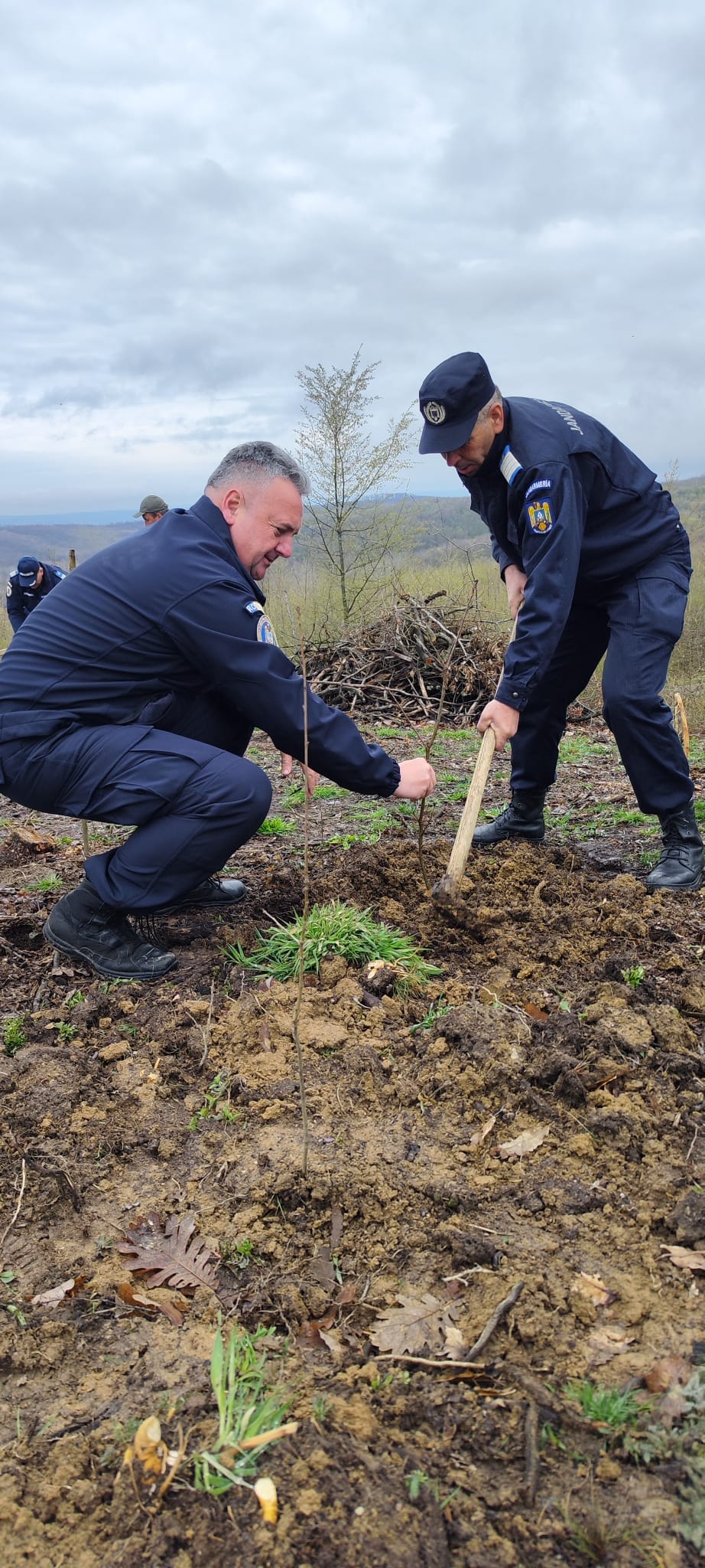 Jandarmii au pus mana pe harlet si alaturi de angajatii Romsilva au plantat duminica 500 de puieti de gorun in apropierea localitatii Branesti, un sat ce apartine de orasul Faget.