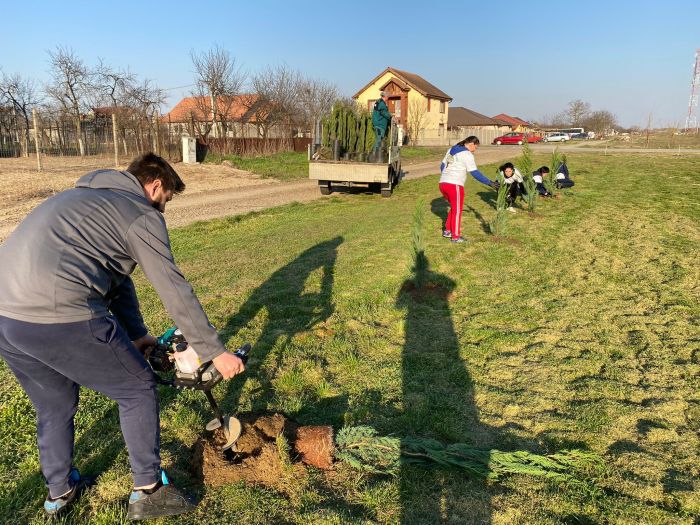 TIMISOARA. S-a strigat adunarea, iar peste 150 de oameni, cu mic, cu mare, au raspuns prezent la o ampla actiune de plantare de arbori.