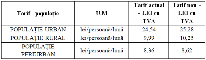 Tarife de facturare aplicabile în Zona 1 – județul Timiș, începând cu 1 ianuarie 2026.