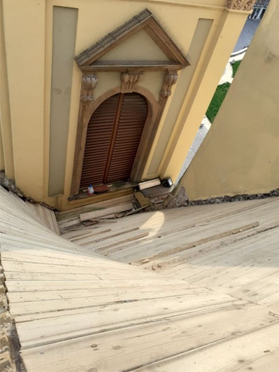 Singurele statui care au fost restaurate pe loc sunt cele care se aflau in fata altarului principal, si care cantaresc mai bine de o jumatate de tona.