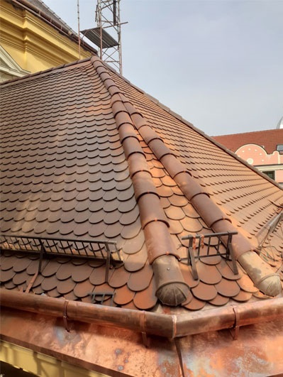 TIMISOARA. Acoperit de plase de protectie, pregatindu-se pentru ultimele retusuri ale reabilitarii complete, Domul Catolic din Piata Unirii este una dintre cladirile simbol ale Timisoarei.