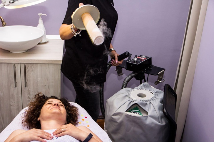 ‘Criofan este aerocrioterapie doar locala. Daca la Criosauna se sta la teperaturi de -130 pana la -180 de grade Celsius, la Criofan local, temperaturile sunt intre -90 si -120 de grade Celsius si merg strict pe anumite zone precum fata, gat, decolteu, zona cervicala, scalp, genunchi inflamati, glezne sau spate, umeri. Domeniile de aplicare sunt la fel de multiple ca si la Criosauna, diferenta fiind doar ca aici nu stai cu totul la temperatura scazuta. Se foloseste acelasi azot lichid si este tot un tratament non-invaziv. Aburii de azot ajuta la redobandirea fermitatii pielii, a tonusului si trateaza foarte bine probleme de piele, incepand de la acnee la dermatite atopice ori psoriazis. De asemenea, creste productia de elastina, de colagen, estompeaza pigmentarile, amelioreaza inflamatiile si durerile musculare’, a explicat Tenzi Diminescu.